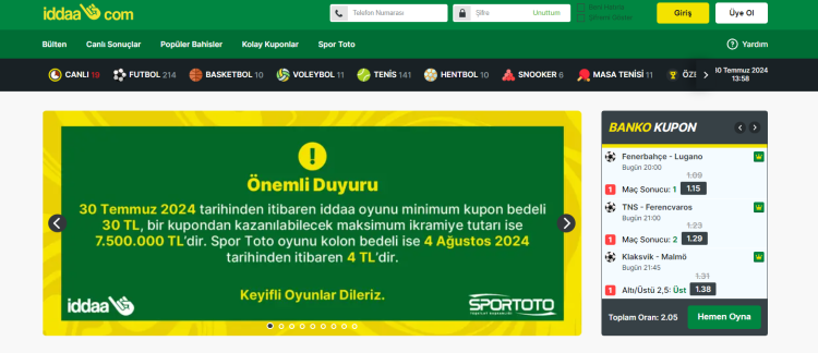 İddaa’nın resmi sitesinden yapılan duyuru şu şekilde: “30 Temmuz 2024 tarihinden itibaren oyunu minimum kupon bedeli 30 TL, bir kupondan kazanabilecek maksimum ikramiye tutarı ise 7.500.000 TL’dir. Spor Toto oyunu kolon bedeli ise 4 Ağustos 2024 tarihinden itibaren 4 TL’dir.”