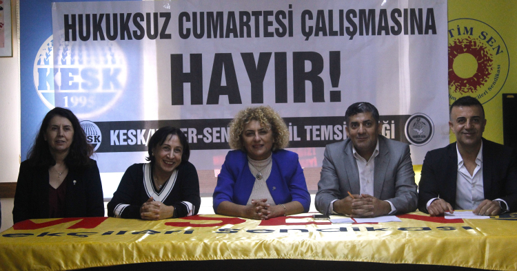 KESK/HABER-SEN 8 Nolu Şube, PTT çalışanlarının Cumartesi günü çalıştırılmalarına tepki göstermek için basın açıklaması yaptı.