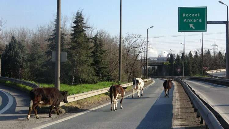 İlginç olay, TEM Otoyolu Dilovası ilçesinde meydana geldi. Otlamaları için bırakılan 4 büyükbaş hayvan, TEM otoyolu Dilovası gişelerden girince kendilerini yolun ortasında buldu. Geri dönmeyen hayvanlar Sakarya-Ankara istikametine ilerlemeye başladı.