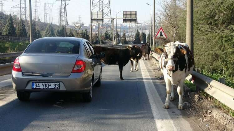 Yolun ortasında araçlara aldırış etmeden ilerleyen büyükbaş hayvanlar, sürücülerin önünde de aniden çıktı. İnekleri fark eden sürücüler kontrollü şekilde ilerlerken gözlerine inanamadı. Yolun ortasında duran inekler sebebiyle bazı araçlar ilerleyemedi. Kimi sürücüler dakikalarca hayvanların çekilmesini bekledi, kimisi ise araçtan inerek hayvanları kenara almaya çalıştı.