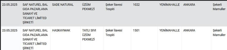 Yayımlanan rapora göre, ‘doğal’ denilerek piyasaya sürülen pekmezlerde şeker katkısı tespit edildi. Lahmacunlarda ise kullanılması gereken dana eti yerine ‘kanatlı eti’ ve ‘tek tırnaklı eti’ gibi sağlığa zararlı olabilecek farklı et türlerinin kullanıldığı ortaya çıktı. Bazı firmaların ise yurttaşlara ‘eşek eti’ yedirttiği belirlendi.
