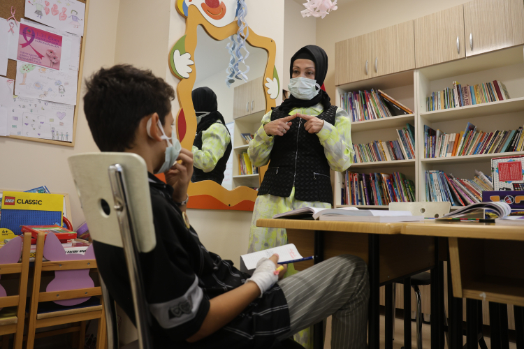 Konya'da sınıf öğretmeni Hatice Karakışla, meme kanserini yenmesinin ardından Konya Şehir Hastanesi'nde bulunan sınıfta öğretmenlik yaparak çocuklara umut oluyor.