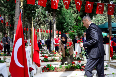 Mersin protokolü, şehitlerin kabirlerine karanfil bırakarak dualar etti. Şehitlikte düzenlenen programda Kur’an-ı Kerim okundu.