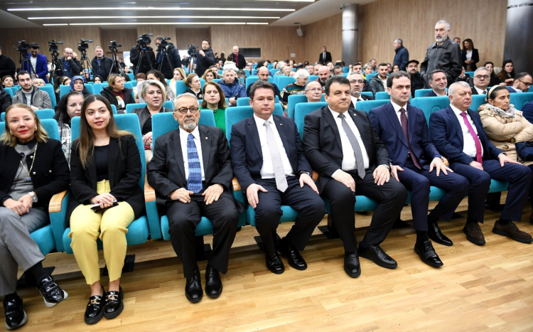 Başkan Aydın, söyleşinin ardından Prof. Dr. Görür'e teşekkür plaketi takdim etti.