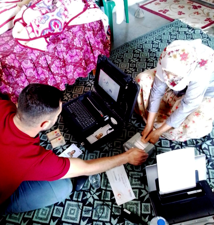 Adana'nın merkez Seyhan İlçe Nüfus Müdürlüğü ekipleri, İçişleri Bakanlığı tarafından yürütülen yeni tip T.C. Kimlik Kartı geçiş projesi kapsamında, "Adreste Nüfus Hizmeti" vermeye devam ediyor. Yaşlı ve engelli vatandaşların evlerine misafir olan görevliler, başvurularda fotoğraf konusunda stüdyo konforu sunuyor, parmak izi alma işlemlerinde titizlik gösteriyor.