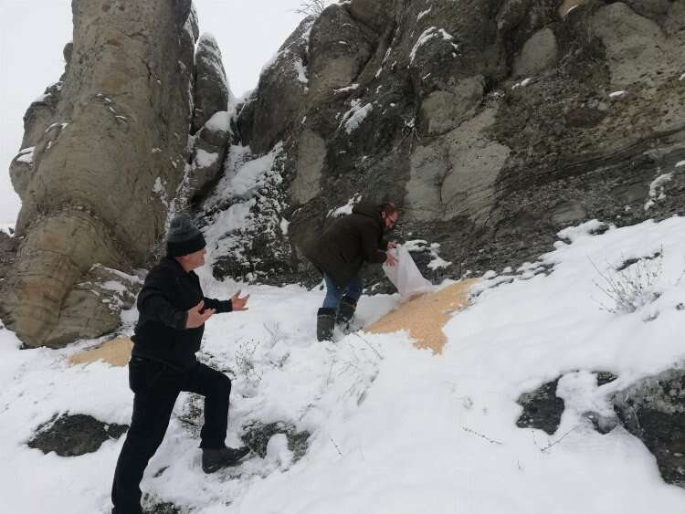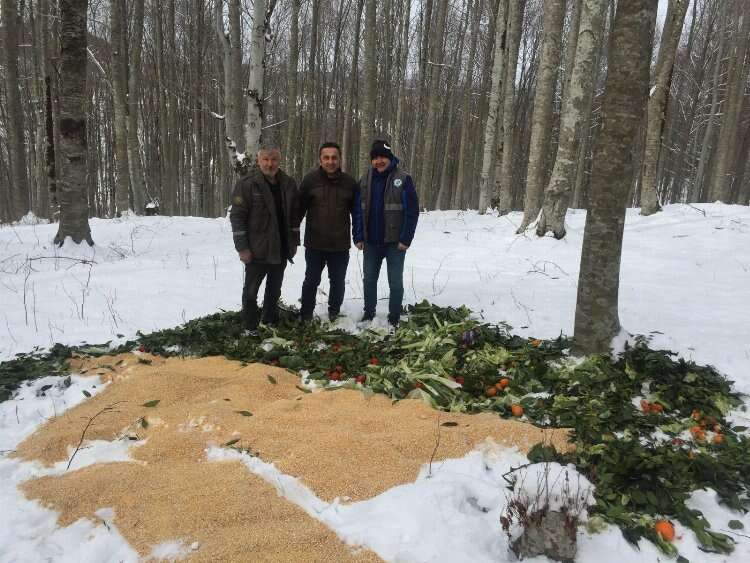 Ordu'da etkili olan kar yağışı sonrasında olumsuz hava şartları nedeniyle aç kalma tehlikesi altında bulunan ve doğal ortamda yiyecek bulmakta zorlanan yaban hayvanları için doğaya yem bırakıldı.