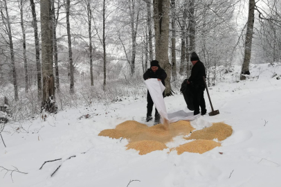 Ordu'da yaban hayvanları için doğaya yem bırakıldı