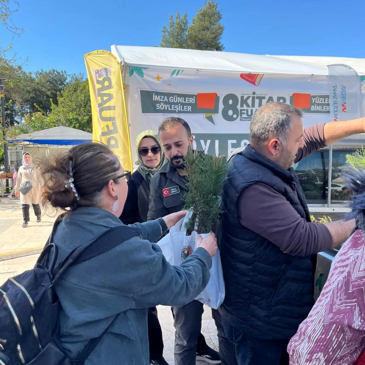 Osmaniye Orman İşletme Müdürlüğü ekipleri, fuar alanında kurdukları stantta ziyaretçilere ücretsiz olarak binlerce fidan dağıttı. Yoğun ilgi gören etkinlikte, kitapların kaynağı olan ağaçlara dikkat çekilirken, doğaya katkı sunmanın önemi vurgulandı.