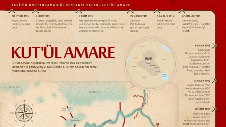 Osmanlı İmparatorluğu’nun en büyük zaferlerinden biri olan Kut'ül Amare, 29 Nisan 1916 tarihinde kazanıldı. İngilizlere karşı elde edilen bu zafer, I. Dünya Savaşı'nın gidişatını değiştiren, Osmanlı'nın askeri gücünü tüm dünyaya gösteren bir başarı olarak kayıtlara geçti.