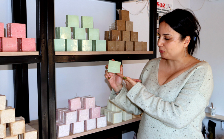 Doğal ve sağlıklı ürünlere yönelişin arttığı bu dönemde tamamen doğal yöntemlerle hazırladığı defne sabunlarıyla beğeni toplayan Kaya, boş zamanlarını Kültür Sanat Çarşısı’ndaki atölyesinde değerlendiriyor. Atölyesinde yalnızca defne sabunu üretmekle kalmayan Kaya, gül, biberiye, kükürt, eşek sütü, keçi sütü, ardıç katranı, doğal kil, çörek otu, sedir ve aloe vera gibi özel içeriklerle hazırladığı rengârenk el yapımı sabunları da satışa sunuyor.