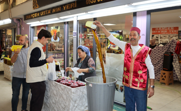 Meyan şerbetini bu Ramazan’da da hijyenik koşullarda üreten Mehmet Gündüz, iftara yakın saatlerde plastik torbalara doldurarak satıyor. Ramazan’a özel kurduğu tezgâhta hizmet veren Gündüz, atalarından miras aldığı mesleği titizlikle sürdürdüğünü belirtiyor.