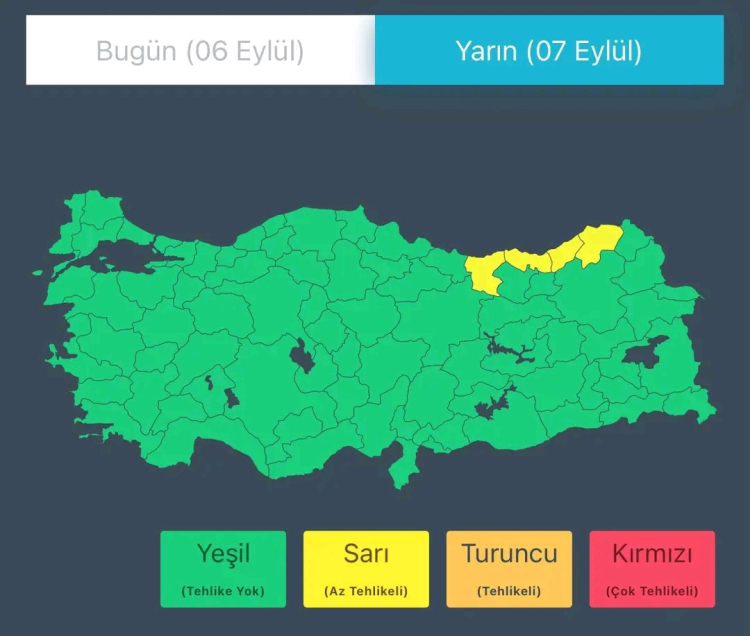 Bu geceden itibaren ise Giresun, Trabzon, Rize ve Artvin'in kuzeyinde kuvvetli sağanak ve gök gürültülü sağanak yağışlar etkisini gösterecek.