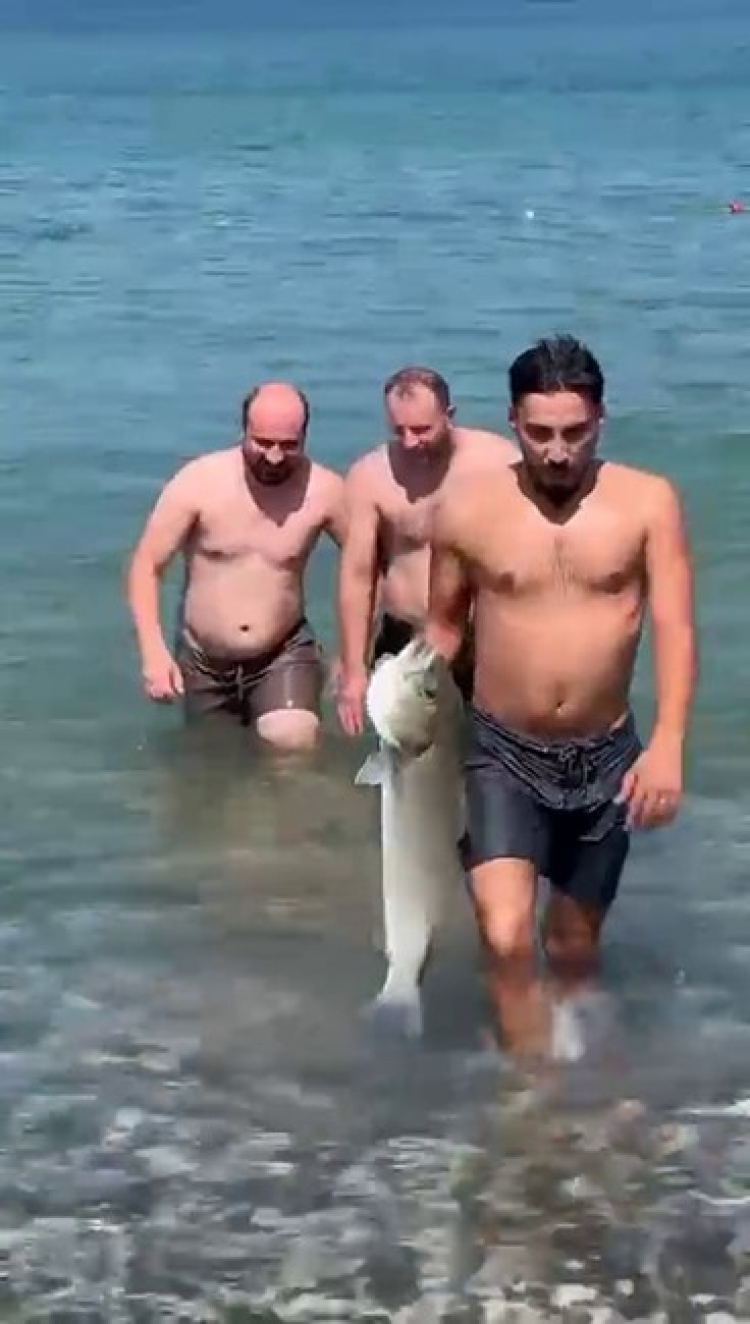 Arifiye ilçesinde ikamet eden Çağatay Hacıoğulları, Kocaeli’nin Kandıra ilçesine gitti. Burada serinlemek için suya giren vatandaş, yanında levrek balığını yüzdüğünü gördü. Bir süre takip ettiği balığı eliyle yakalayan vatandaş, sahile çıkıp yakaladığı balıkla poz verdi. Vatandaşın balığı sudan çıkartması ise cep telefonu kamerasına yansıdı.