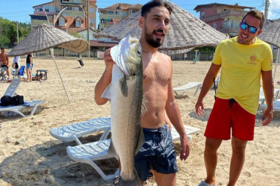 Sakarya’da yaşayan bir kişi yüzmek için girdiği Kocaeli’nin Kandıra ilçesindeki denizden eliyle tuttuğu 6 kiloluk levrek balığıyla çıktı.