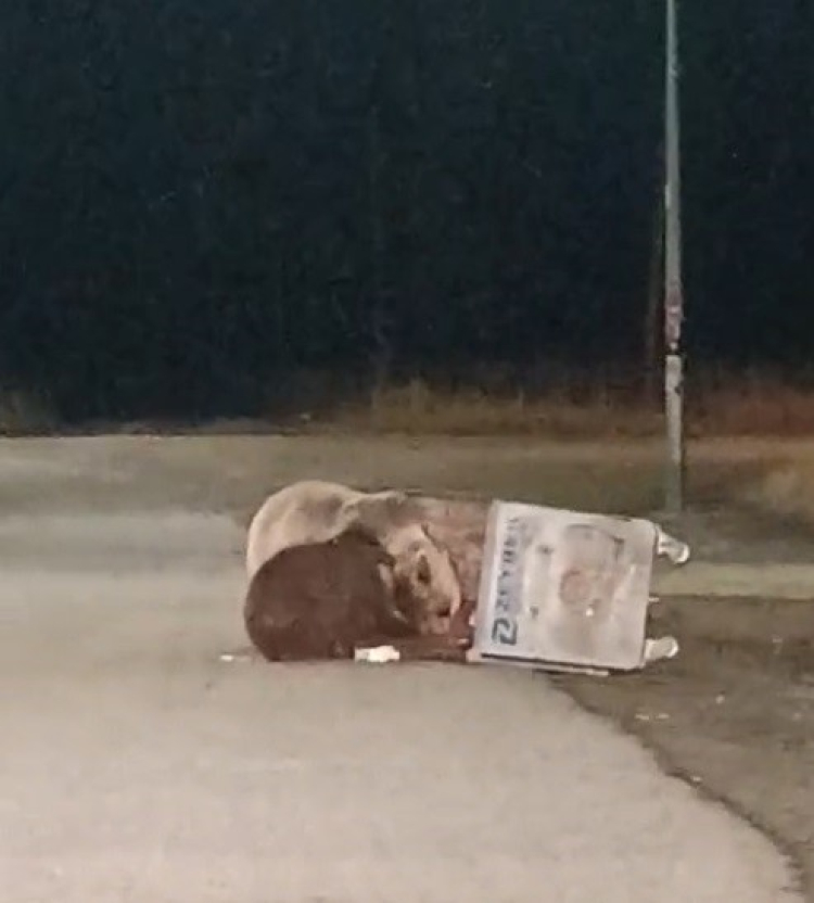 Kars’ın Sarıkamış ilçesinde gece saatlerinde çöp konteynerlerinde yiyecek arayan ayılar, agresif tavırlarıyla dikkat çekti.