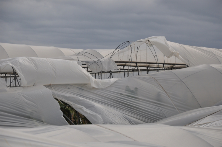 Ekiplerin incelemesinde, direkleri yıkılan ve örtüleri yırtılan seralardaki meyve ve sebzelerin zarar gördüğü belirlendi. Çiftçilerden Zahit Yılmaz, AA muhabirine, 5 dönümlük serada muz yetiştirdiğini söyledi.