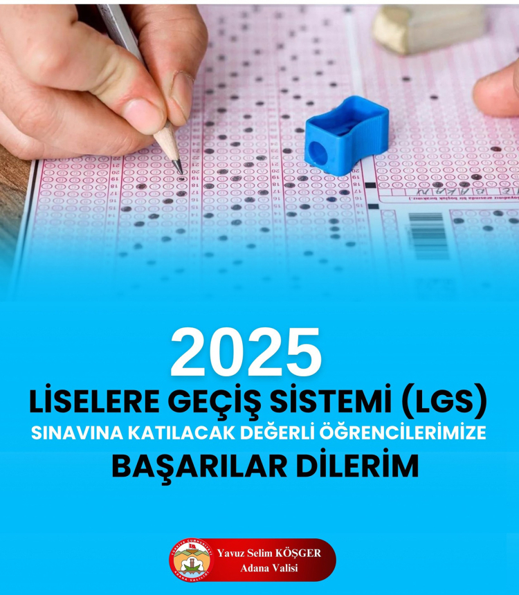 Türkiye genelinde yapılacak olan LGS sınavı için geri sayım başladı. Adana Valisi Yavuz Selim Köşger, 15 Haziran’da yapılacak LGS sınavı öncesi sürücülere önemli bir çağrıda bulundu. Vali Köşger, sınav sırasında öğrencilere destek olmak için sessizliğe özen gösterilmesini istedi.