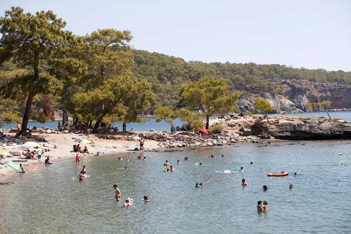 Antalya'nın Kemer ilçesinde kıyısı piknik alanı, kumsalı ise plaj olarak kullanılan, yaz boyunca yoğunluk yaşanan Phaselis Antik Kenti'nde bayram tatili dolayısıyla ziyaretçi sayısı arttı.