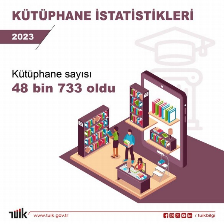 Türkiye İstatistik Kurumu TÜİK 2023 yılına ait ‘Kütüphane İstatistikleri’ verilerini açıkladı. Açıklanan veriler esas alınırken 2023 yılından itibaren Cumhurbaşkanlığı Millet Kütüphanesi istatistikleri kütüphanenin idari kayıtlara göre yayımlanmaya başlandı. Kütüphane sayısı 2023 yılında 1 Cumhurbaşkanlığı Millet Kütüphanesi, 1 Milli Kütüphane, 1 295 halk kütüphanesi, 627 üniversite kütüphanesi ve 46 bin 809 örgün ve yaygın eğitim kurum kütüphanesi olmak üzere toplam 48 bin 733 oldu.