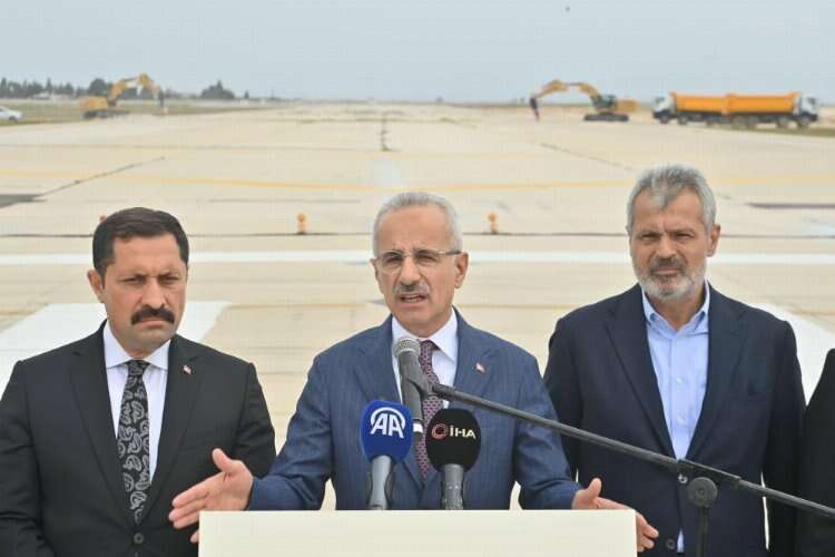Bakan Uraloğlu, Hatay Havalimanı'nda depremin ardından sadece boş iniş dolu kalkışa müsaade edildiğini, zemin güçlendirmeleri ve pist onarımları sonrasında dolu iniş dolu kalkış için gerekli kriterleri sağladıklarını belirterek, "Depremde gördüğü hasar sonucu pisti kullanılamaz hale gelen Hatay Havalimanı’nı ekiplerin hummalı çalışması sonucu Mart sonu itibarıyla uçuşlara hazır hale getirdik. Ardından yaptığımız zemin iyileştirmeleri sonucunda 29 Mart 2024 tarihinden itibaren de dolu iniş ve dolu kalkış olarak uçuşları başlattık. 29 Mart tarihinden bu yana havalimanımızdan gerçekleşen 16 seferle 2 bin 237 giden yolcu, 2 bin 112 gelen yolcu olmak üzere toplam 4 bin 349 yolcumuz havalimanımızdan seyahat etmiştir. Uçuşa başlattığımız günden itibaren günlük 3 sefer olmak üzere toplam 30 tarifeli sefer planlaması yapılmasına rağmen bazı seferler olumsuz hava koşulları nedeniyle havayolu şirketleri tarafından iptal edilmiştir" ifadelerini kullandı.