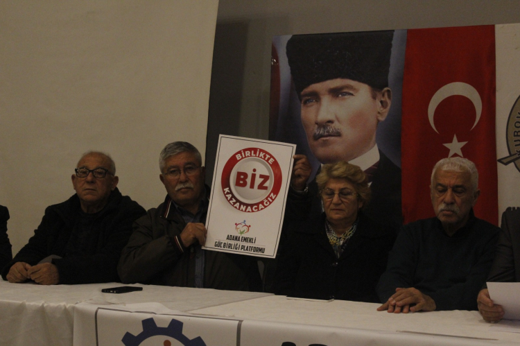 Adana Emekli Güç Birliği Platformu, emeklilerin karşılaştığı sorunları çözmek ve haklarını dile getirmek amacıyla Gazeteciler Cemiyeti'nde basın açıklaması yaptı.