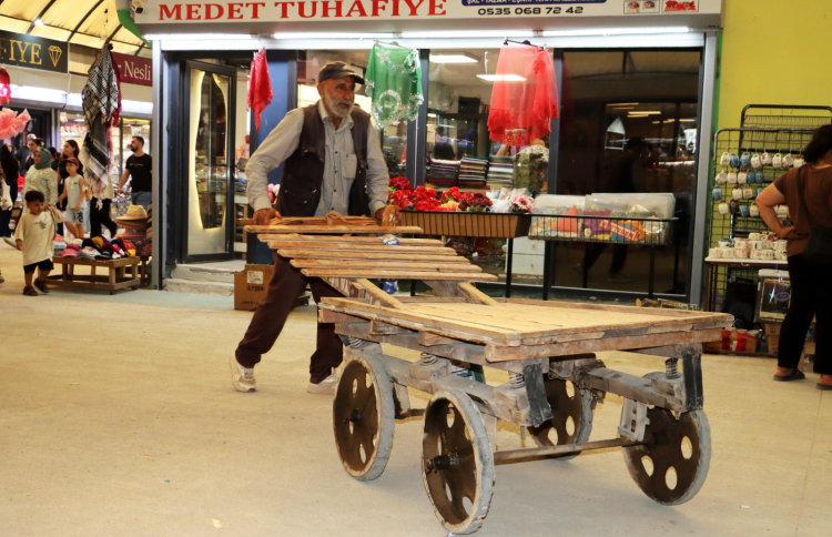 Çarşının son el arabacısı 66 yaşındaki Şaban Halvacıoğlu, 45 yıldır aynı araçla geçimini sağlıyor. En az bir asırlık geçmişi olduğu belirtilen el arabasıyla yıllarca tonlarca yük taşıyan Halvacıoğlu, mesleğin geçmişini şu sözlerle anlattı: