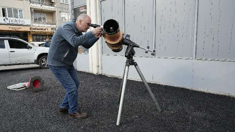 Bursa'da kendi başına evinin bodrumunda teleskop üreten Bursalı Şenol Şanlı, dondurucu soğukta saatlerce bekledi, kendi ürettiği teleskopla ilk Türk astronot Alper Gezeravcı'nın içinde bulunduğu Uzay İstasyonu'nun yörüngesi Bursa'nın üzerinden geçerken dolunayla görüntüledi.