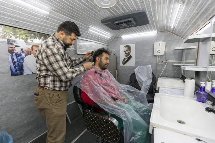 6 Şubat depremlerinden sonra mahalleye taşındığını söyleyen Ali Eren de, “Merkeze inmeye vakit bulamıyoruz. Hafta sonları berberler kapalı oluyor. Bu hizmet bizim için büyük kolaylık. Yılbaşı öncesinde bakımımızı yaptırmak moral oldu. Ücretsiz olması da çok büyük avantaj” diye konuştu.