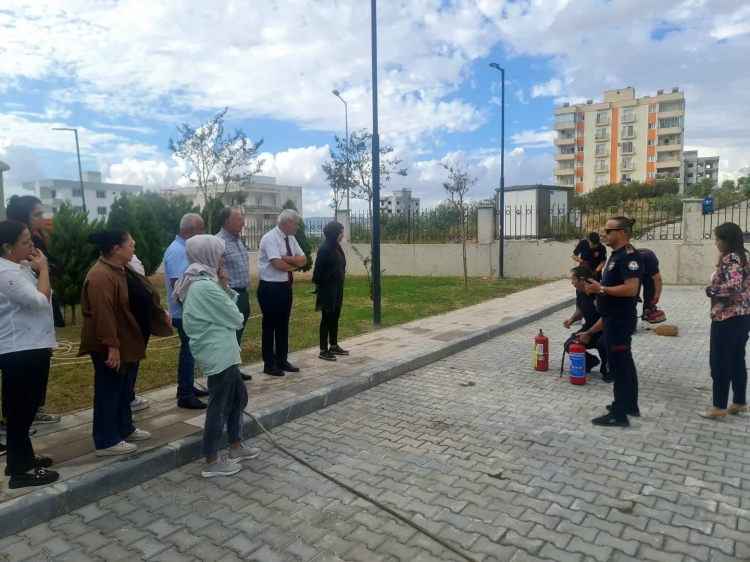 Eğitimin ardından bahçede gerçekleştirilen tatbikatta, personel yangın söndürme tüpleriyle uygulamalı olarak yangına müdahale etti. Kontrollü yangın sırasında söndürme teknikleri itfaiye personeli tarafından adım adım gösterildi.