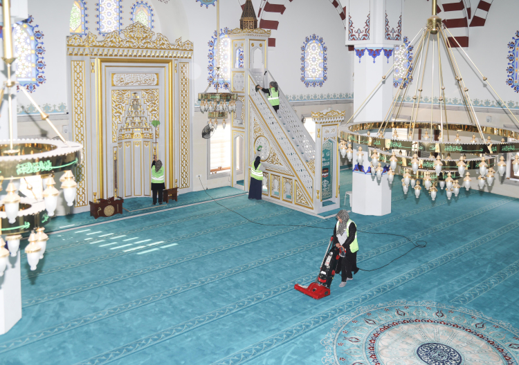 İbadethanelerde sağlıklı ortam için ekiplerin titiz temizlik çalışmaları hız kesmeden devam ediyor