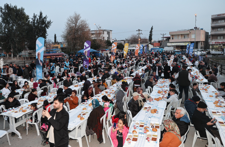 İftar sofralarını tek tek dolaşıp vatandaşlarla sohbet eden Yüreğir Belediye Başkanı Ali Demirçalı, “Ramazan kardeşliğin, sevginin, dayanışmanın arttığı, birbirimize daha sıkı sarıldığımız bir ay. Ramazan ayı boyunca farklı mahallelerimizde aynı sofrayı paylaşarak dayanışmayı daha da büyüteceğiz. İftar yemeğimizde bizimle bir araya gelen herkese canı gönülden teşekkür ediyorum” şeklinde konuştu.