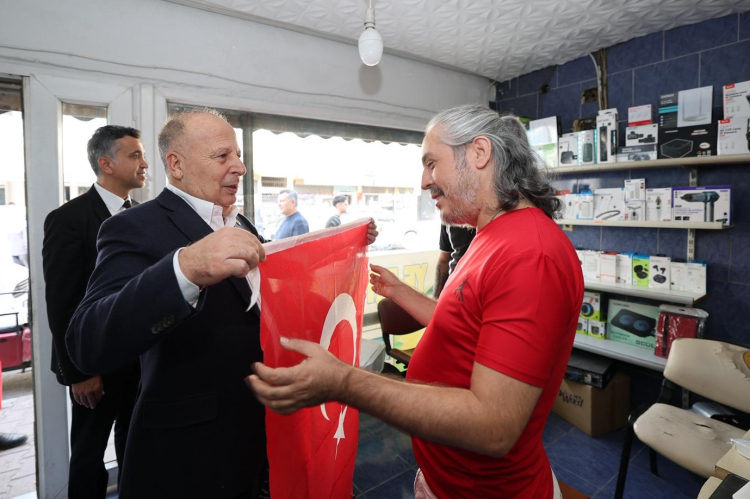 Yüreğir Belediye Başkanı Ali Demirçalı, Cumhuriyet Bayramı öncesinde ilçedeki mahalleleri ziyaret ederek esnaf ve vatandaşlara Türk bayrağı dağıttı.