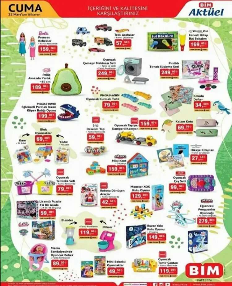 BİM 22 Mart 2024 kataloglarında neler yer alıyor, hangi üründe hangi fiyat var ve indirimli ürünler hakkında merak ettikleriniz yanıt buluyor. İşte 22 Mart 2024 BİM Aktüel Kataloğu ve indirimli ürünler...