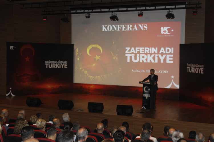 Adana Müzesi Konferans Salonu’nda düzenlenen “Zaferin Adı Türkiye” konferansında konuşan Av. Doç. Dr. Hüseyin Aydın, 15 Temmuz’un yalnızca bir darbe girişimi değil, milletin tarihindeki bir dönüm noktası ve milat olduğunu belirtti.