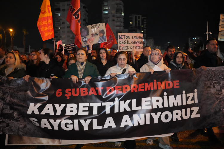 6 Şubat Kahramanmaraş merkezli depremlerin yıl dönümünde Adana’da depremzedeler, hayatını kaybeden yakınlarını andı. Deprem Dayanışması, Emek ve Demokrasi Platformu ile vatandaşların organize ettiği yürüyüşte, katılımcılar İller Bankası’ndan Duygu Kafe önüne kadar yürüdü. Anma etkinliğine Adana Büyükşehir Belediye Başkan Vekili Güngör Geçer, Zeydan Karalar, CHP Adana İl Başkanı Anıl Tanburoğlu, TMMOB Adana İl Koordinasyon Kurulu Sekreteri Kerem Şahin, İMO Adana Şube Başkanı Hıdır Çak, CHP Adana ve Niğde milletvekilleri ile depremzedeler ve yakınları katıldı.
