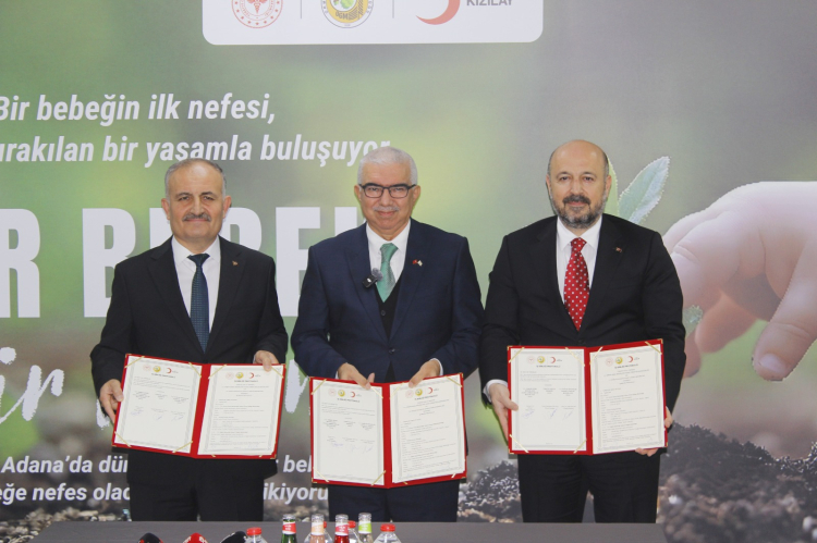 Adana İl Sağlık Müdürlüğü, Türk Kızılay ve Adana Orman Bölge Müdürlüğü arasında imzalanan “Bir Bebek Bir Fidan” protokolü kapsamında, 2026 yılında Adana’da doğan her bebek adına fidan dikilecek.