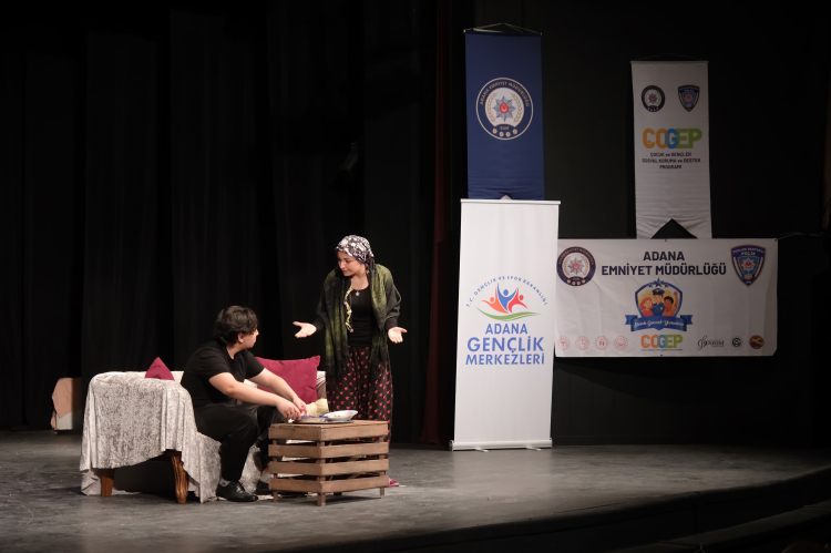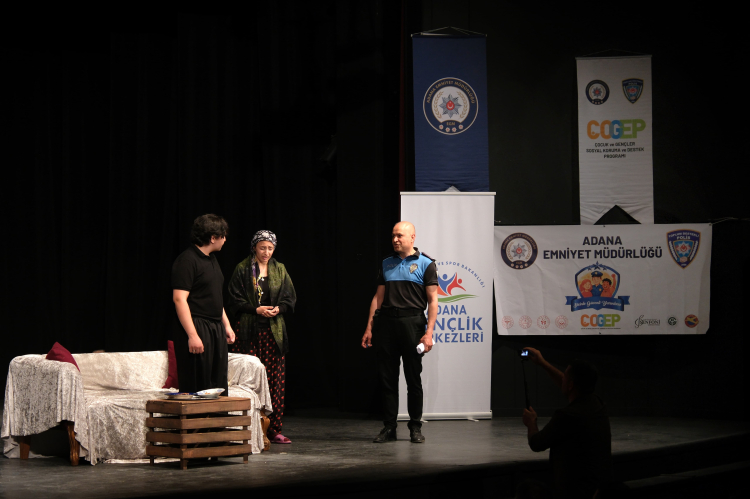 Adana İl Emniyet Müdürlüğü’nün ÇOGEP kapsamında yürüttüğü “Sizinle Güvenli Yarınlara” projesiyle tiyatro eğitimi alan 15 genç, sahneledikleri “Bir Kadının Rüyası” adlı oyunla izleyicilerden tam not aldı.
