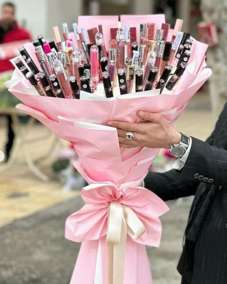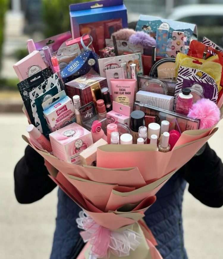 Bu özel buketlerde, göz farları, allıklar, maskaralar ve çeşitli rujlar bulunuyor. Renkli ve çekici görünümleriyle dikkat çeken bu buketler, sevdiklerine hem şaşırtıcı hem de kullanışlı bir hediye sunmak isteyenler için ideal seçenekler arasında yer alıyor.