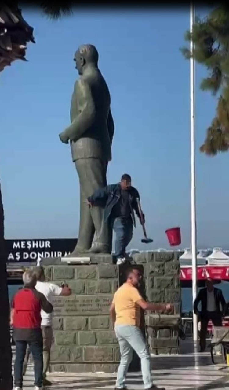 Balıkesir'in Ayvalık ilçesinde akli melekelerinin yerinde kayıtlı bir kişi, Atatürk'ün anıtına balyozla saldırınca büyük bir gerginliğe yol açtı. Olayın ardından kişi vatandaşlar tarafından darp edildi.