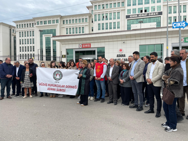 Emek ve Demokrasi Platformu (ÇHD) Adana Şubesi, gözaltılara tepki göstermek için Adana Adliyesinde basın açıklaması düzenledi. Açıklamayı Av. Cemre Topal yaptı. Avukat Cemre Topal, gözaltına alınanlar arasında ÇHD üyesi Avukat Sergen Nisanoğlu’nun da aralarında bulunduğunu belirterek, sürecin sonuca bağlanmasını talep etti. Topal, "Savcılığa sevk edilmek üzere hazırlıklar tamamlanmışken, son anda gelen bir talimatla gözaltı süresi tekrar uzatıldı" dedi.