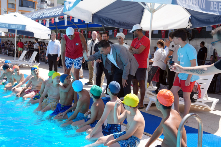 Etkinlikte çocuklara ve ailelerine seslenen Çukurova Belediye Başkanı Emrah Kozay, “Artık okullar kapandı, şimdi yüzme öğrenme ve eğlenme zamanı. Tam Olimpik havuzumuzda 7-12 yaş arasındaki çocuklarımıza temel yüzme eğitimi vererek bu konuda çok önemli bir hizmeti gerçekleştiriyoruz. Ayrıca çocuklarımıza karne hediyesi tadında oluşturduğumuz bu eğitim programıyla onlara yüzmeyi öğretirken, güzel bir zaman geçirmelerini de sağlayarak spora olan ilgilerini ve yeteneklerini canlandırmayı, 10 bin çocuğumuzun yüzme öğrenmesini hedefliyoruz” dedi.