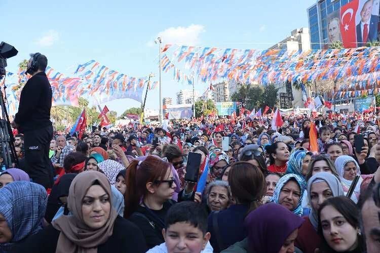 Adana'da şu anda meydanda 75 bin kişi var. Adana'yı malum ellerde almaya hazır mıyız? Adana, eser ve hizmet nasipsizlerini sırtında taşır mı? Adana'nın gerçek belediyeciliğe olan hasretini dindirmeye az kaldı. Geçtiğimiz mayıs ayındaki seçimlerde verdiğiniz destek için siz teşekkür ediyorum. 31 Mart'ta Adana sandıklarını patlatarak gerçek potansiyelini ortaya çıkaracaktır.