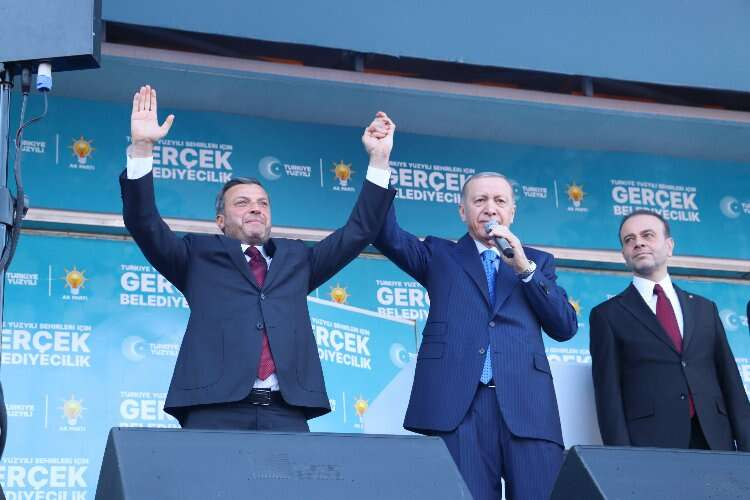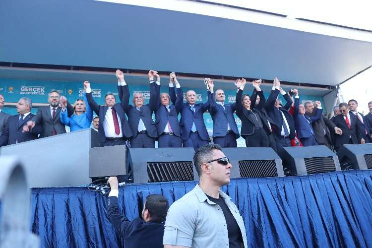 Erdoğan, Cumhur İttifakı adaylarını tanıttı. Mitinge Ak Parti Genel Başkan Yardımcıları Efkan Ala, Ömer Çelik, Yusuf Ziya Yılmaz ve MHP ve Ak Parti Adana Milletvekileri katıldı.