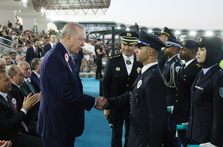Erdoğan, Polis Akademisi mezunlarına seslenerek, ülkenin huzur ve güvenliğini sağlayan polislere övgüde bulundu. “Hiçbir sabotaj, tahrik ve tuzak Türkiye’nin bu tarihi yürüyüşünü engelleyemeyecek” dedi ve şehitler ile gazilere rahmet diledi.