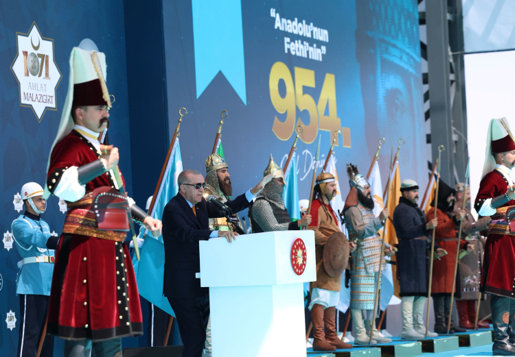Malazgirt Zaferi’ne atıfta bulunan Erdoğan, “Malazgirt’te düşmanı bozguna uğratan güçlü irade bugün burada. Türk, Kürt ve Arap kurucu irade bugün burada.” dedi ve Türkiye’nin mazlumların umudu olduğunu vurguladı: “Hiçbir güce boyun eğmiyoruz.”