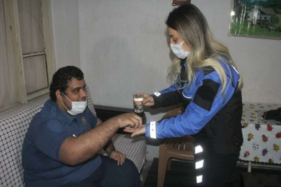Engelli gencin polis sevgisi ilacını polisin elinden içiyor