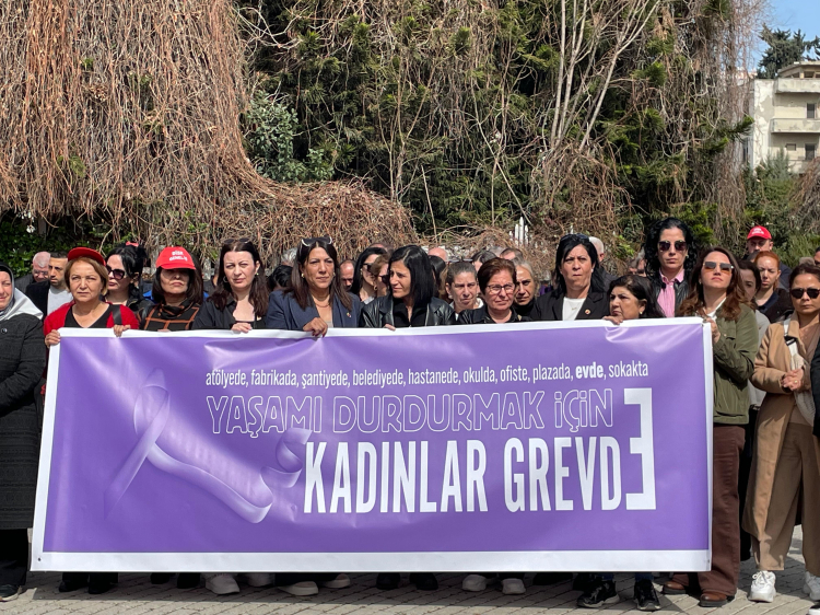 Biz kadınlar, haklarımızı savunuyor, eşitlik, özgürlük ve adalet için sesimizi yükseltiyoruz! Kazanılmış haklarımıza saldıranlara karşı eşitlik, özgürlük ve adalet taleplerimizle yaşamı durduruyoruz!