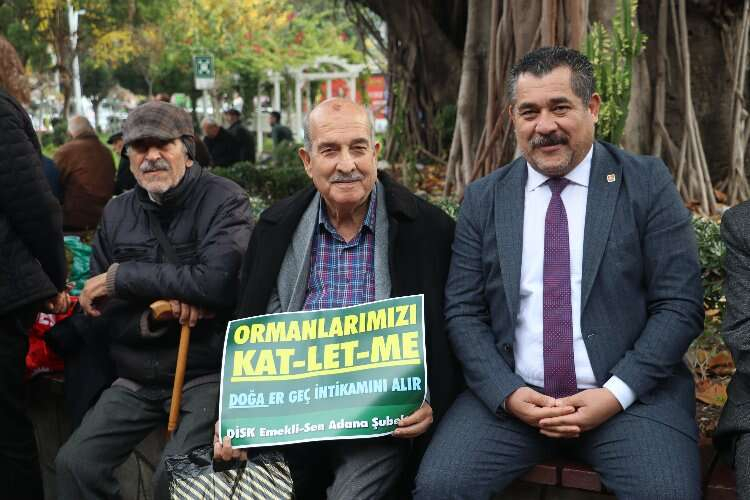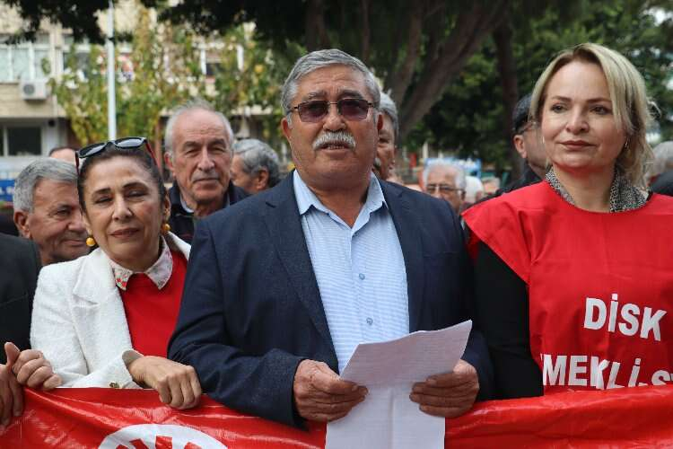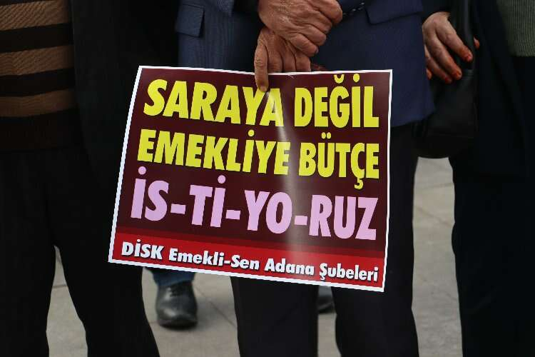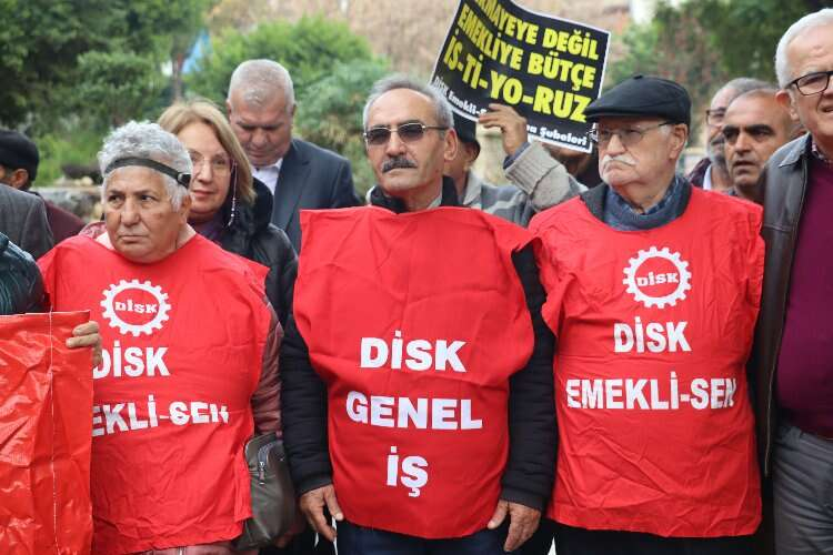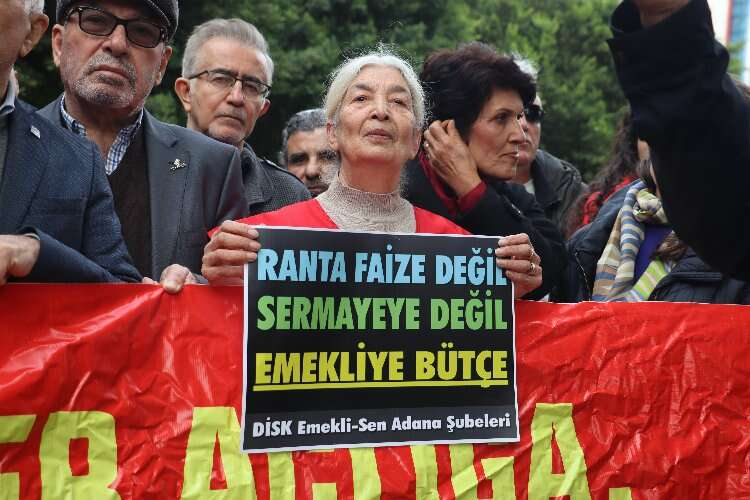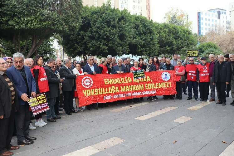 DİSK, Adana’da emeklilik maaşlarıyla ilgili İnönü Parkı’nda yaptığı açıklamada en düşük emekli maaşlarının asgari maaşın yarısından az olmaması gerektiğini söyledi.