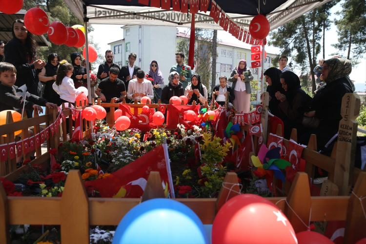 MEZARLARA BAYRAK VE BALONLAR BIRAKILDI