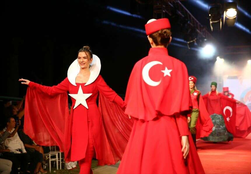 Defilenin finali, Türk bayrağı ile ay ve yıldız desenli kıyafetlerle yapıldı.